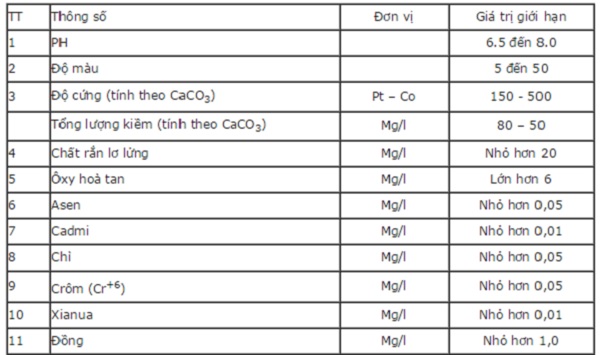 – Căn cứ vào tiêu chuẩn chất lượng nước của Việt Nam TCVN5942-1995