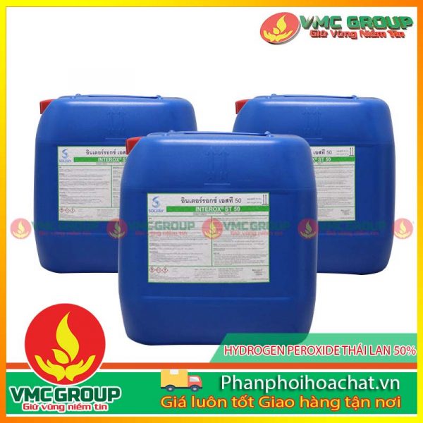 – Xuất xứ : Hàn Quốc/ Thái Lan – Quy cách: Tịnh 30kg/can – Hàm lượng chính : H2O2 50% MIN |
