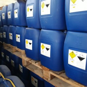 OXY GIÀ – H2O2 HYDROGEN PEROXIDE HÀN QUỐC 50%– Khi tiếp xúc với hoá chất phải trang bị bảo hộ lao động. Hydrogen peroxide H2O2 là chất oxi hóa mạnh, gốc oxygen tự do phân tán sẽ kết hợp với chất dễ cháy gây ra cháy nổ. Khi để tiếp xúc với chất hóa học hữu cơ hoặc nguyên vật liệu dễ cháy, Hydrogen peroxide H2O2 sẽ phân hủy nhanh chóng và có thể gây ra cháy nổ. Oxy già dễ ăn mòn và phỏng da, mắt và đường hô hấp. Hydrogen peroxide H2O2 rất độc hại khi hít phải. |